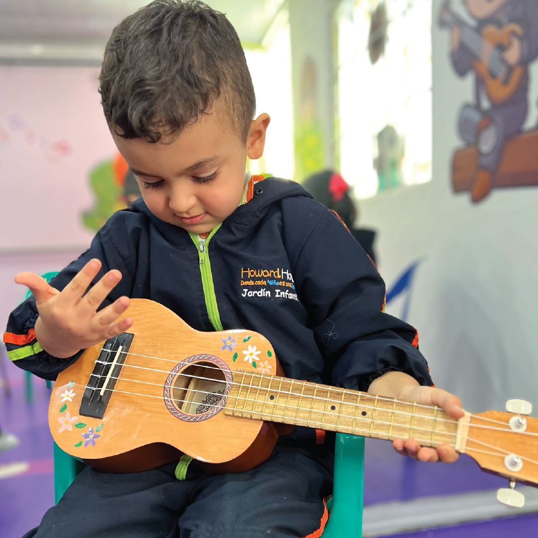 A través de nuestras clases de música en preescolar, los niños exploran su creatividad y desarrollan una apreciación por la música. Mediante actividades lúdicas y juegos, fomentamos la exploración de ritmos, melodías y diferentes estilos musicales. Los niños participan en actividades de canto, percusión y movimiento, lo que les permite experimentar y expresarse a través del sonido. Nuestro objetivo es cultivar en ellos un amor y una apreciación duradera por la música desde una edad temprana